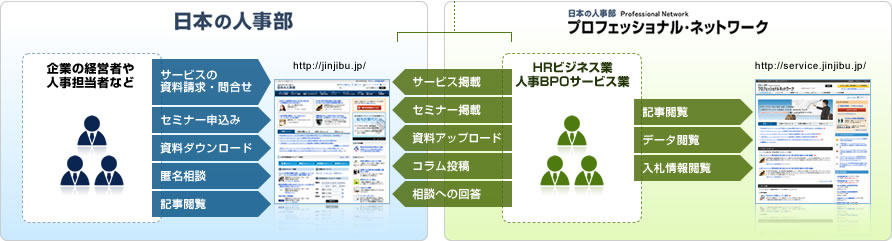 『ソリューションナビ』 、『プロネット』、 『日本の人事部』の関係について